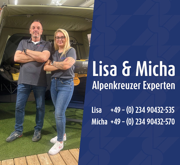 Aktuell ausgestellte Alpenkreuzer-Markenprodukte. Besuchen Sie unsere großen Vorzeltausstellung in Bochum.
